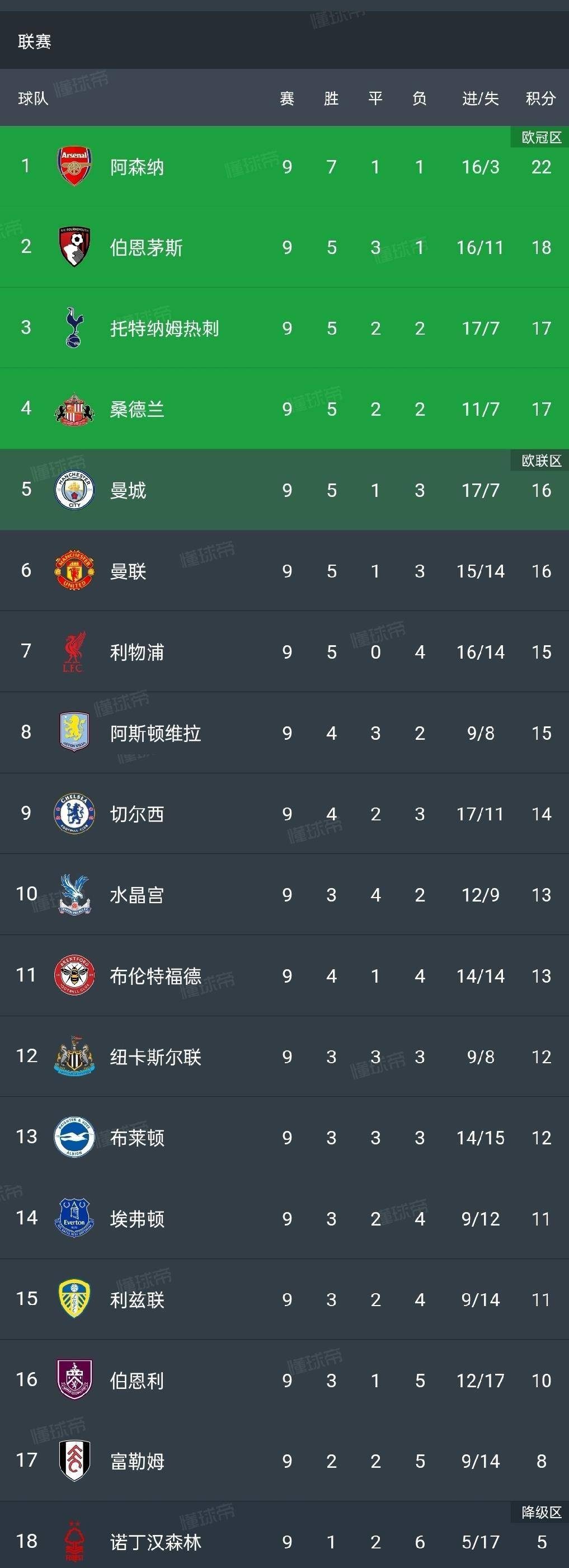 หลังจากการแข่งขันพรีเมียร์ลีกในรอบที่เก้าสิ้นสุดลง ตารางคะแนนลีกได้เผยให้เห็นการจัดอันดับใหม่ที่สร้างความประหลาดใจ โดยสโมสรยักษ์ใหญ่ดั้งเดิมหลายทีมต้องเสียตำแหน่งให้กับสองทีมที่คาดไม่ถึง