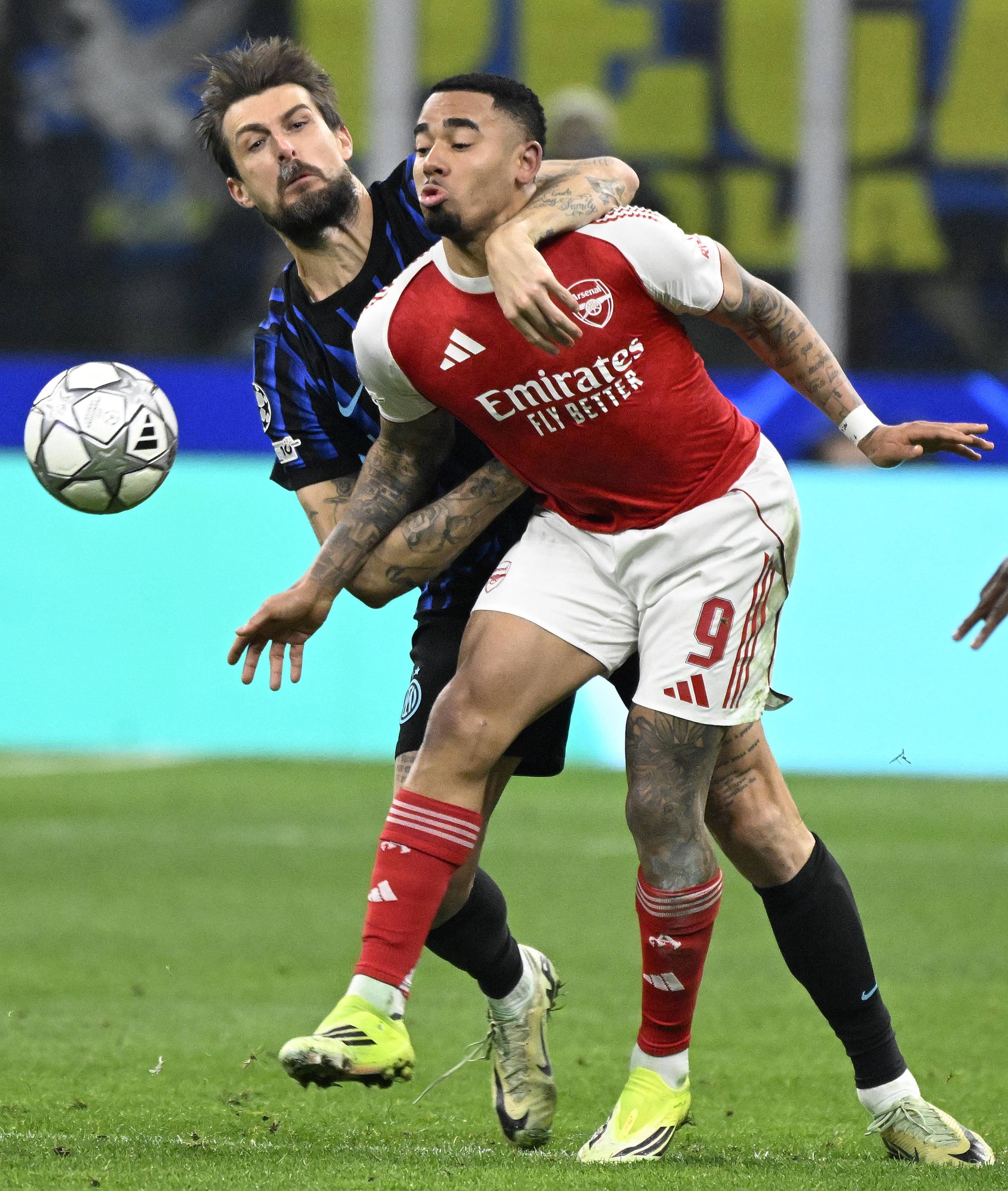 เมื่อวันที่ 20 มกราคม กาเบรียล เชซุส ของอาร์เซนอล (ขวา) เข้าแย่งบอลกับ มัตเตีย ดัมโบรซิโอ ของอินเตอร์ มิลาน ซีนา/EPA