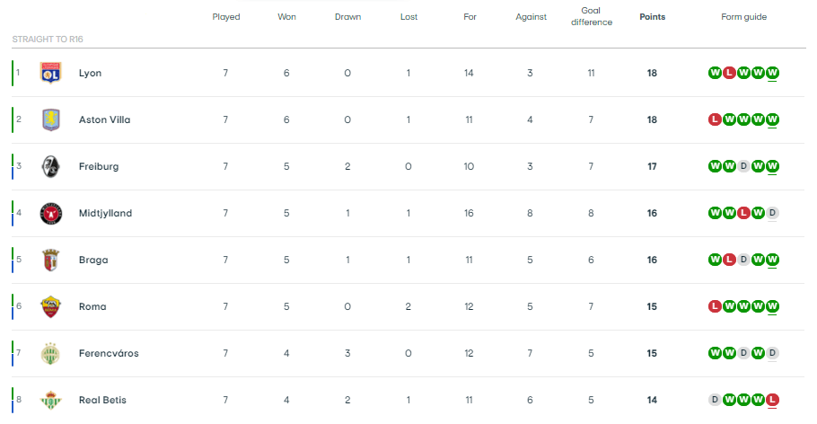 หลังจากการแข่งขันรอบนี้ของยูโรปาลีกสิ้นสุดลง ลียงและแอสตัน วิลล่าได้ผ่านเข้ารอบน็อคเอาท์โดยตรง