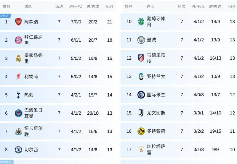 ชัยชนะครั้งแรกในแชมเปียนส์ลีก! สี่ทีมจากพรีเมียร์ลีกผนึกกำลังเอาชนะลีกเอิง 1 และคว้าชัยชนะครั้งแรกได้อย่างสบายๆ โดยเอาชนะลาลีกา, เซเรียอา และบุนเดสลีกา_ตารางการแข่งขัน_อาร์เซนอล