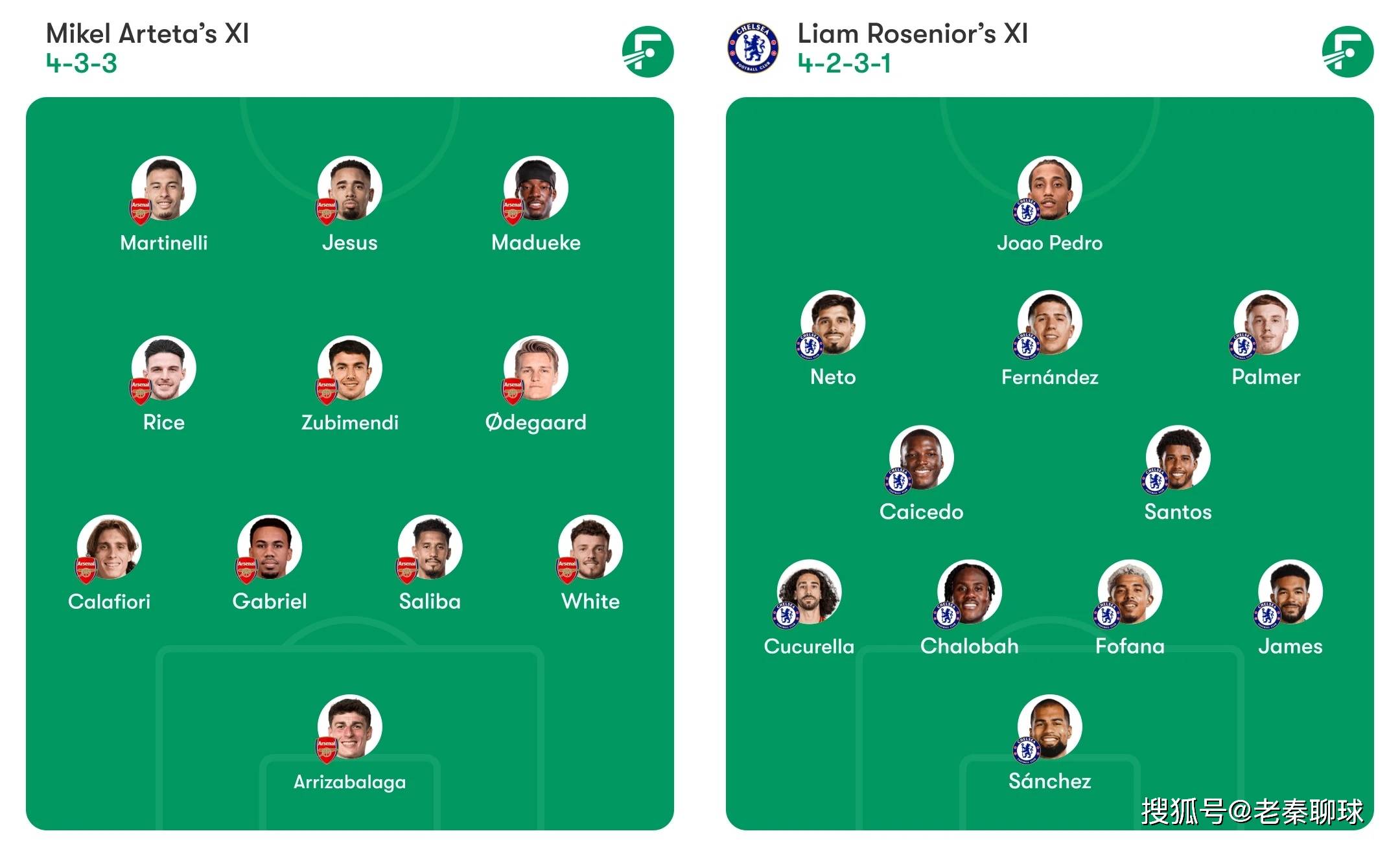 切尔西阵容预测(4-2-3-1):桑切斯;詹姆斯、福法纳、查洛巴、库库雷利亚;凯塞多、桑托斯;帕尔默、费尔南德斯、内托;佩德罗。