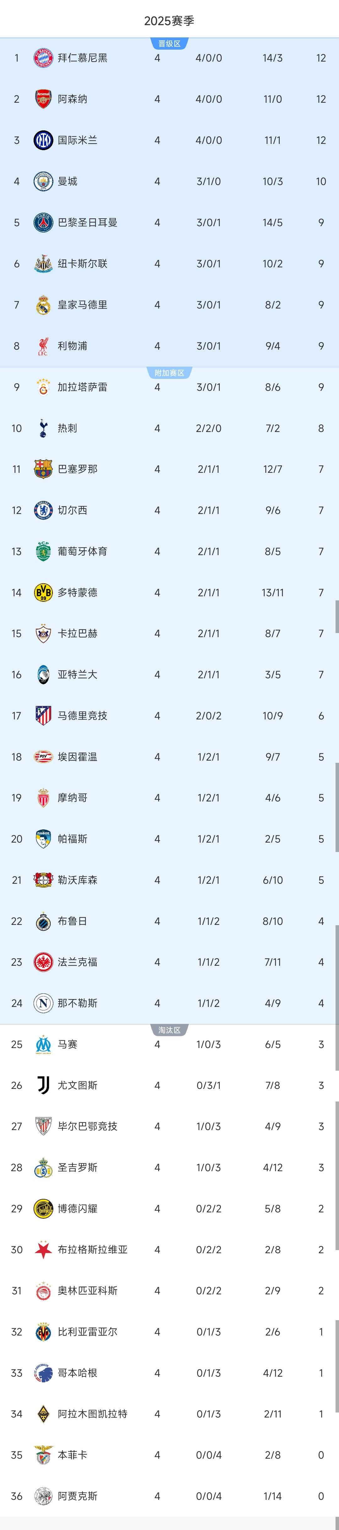 หลังจากการเสมอ 3-3 อย่างน่าตกใจของบาร์เซโลนาตารางคะแนนล่าสุดของแชมเปียนส์ลีกได้ถูกประกาศออกมาแล้วโดยแมนเชสเตอร์ ซิตี้ ขยับขึ้นมาอยู่อันดับสี่ และอินเตอร์ มิลาน อยู่อันดับสามหลังจากชนะติดต่อกันสี่นัด