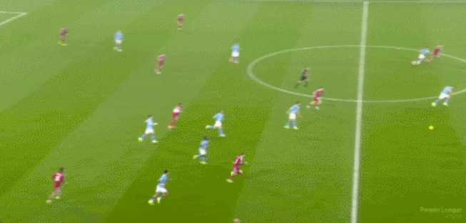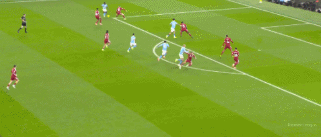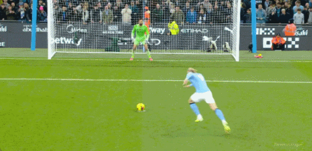 ในนาทีที่ 9 ดูกูถูกผู้รักษาประตู มามาร์ดาชวิลี ทำฟาวล์ในเขตโทษ ส่งผลให้มีการมอบจุดโทษ ฮาลันด์ก้าวขึ้นมาเพื่อยิงจุดโทษ แต่ความพยายามของเขาถูกเซฟไว้ได้ แมนเชสเตอร์ ซิตี้ พลาดโอกาสทองในการขึ้นนำ ขยายสถิติในพรีเมียร์ลีกของพวกเขาในการพลาดจุดโทษ 4 ครั้งจาก 5 ครั้งที่เจอกับลิเวอร์พูล