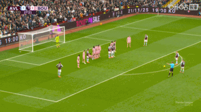 - ในนาทีที่ 64 บอร์นมัธมีโอกาสที่จะตีเสมอได้จากการโหม่งของเอวานิลสันจากเสาไกลที่ไปโดนมือของโรเจอร์ส ส่งผลให้มีการมอบจุดโทษ อย่างไรก็ตาม เซเมโด้ยิงจุดโทษไปติดเซฟอย่างยอดเยี่ยมโดยผู้รักษาประตูของวิลล่า มาร์ติเนซ ทำให้วิลล่ายังคงรักษาความได้เปรียบสองประตูไว้ได้