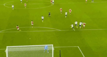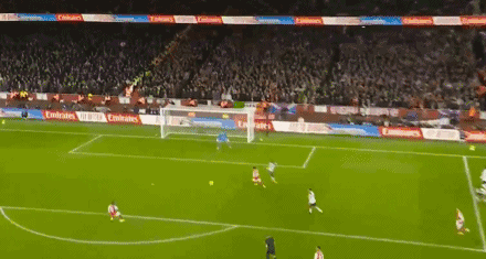 ในนาทีที่ 36 เมรีโน่ส่งบอลโด่งอย่างแม่นยำข้ามแนวรับ ทรอสซาร์ดวิ่งเข้าหาบอลได้อย่างสมบูรณ์แบบ ควบคุมบอลในเขตโทษก่อนจะหมุนตัวแล้วยิงบอลต่ำเข้าไปที่มุมล่างซ้าย อาร์เซนอลขึ้นนำ 1-0!