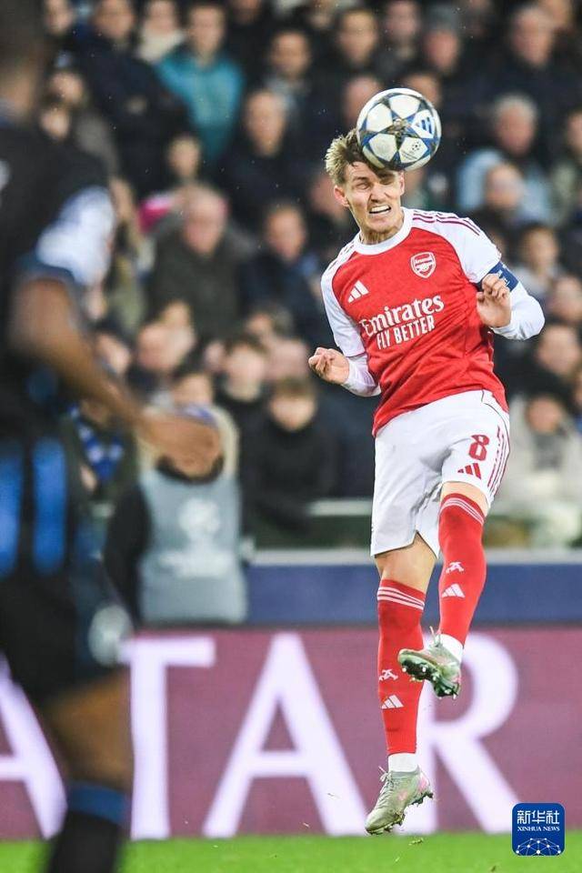 เมื่อวันที่ 10 ธันวาคม นักเตะอาร์เซนอล มาร์ติน โอเดการ์ด โหม่งลูกบอลระหว่างการแข่งขัน ภาพโดย เพิ่ง จือหยาง สำนักข่าวซินหัว