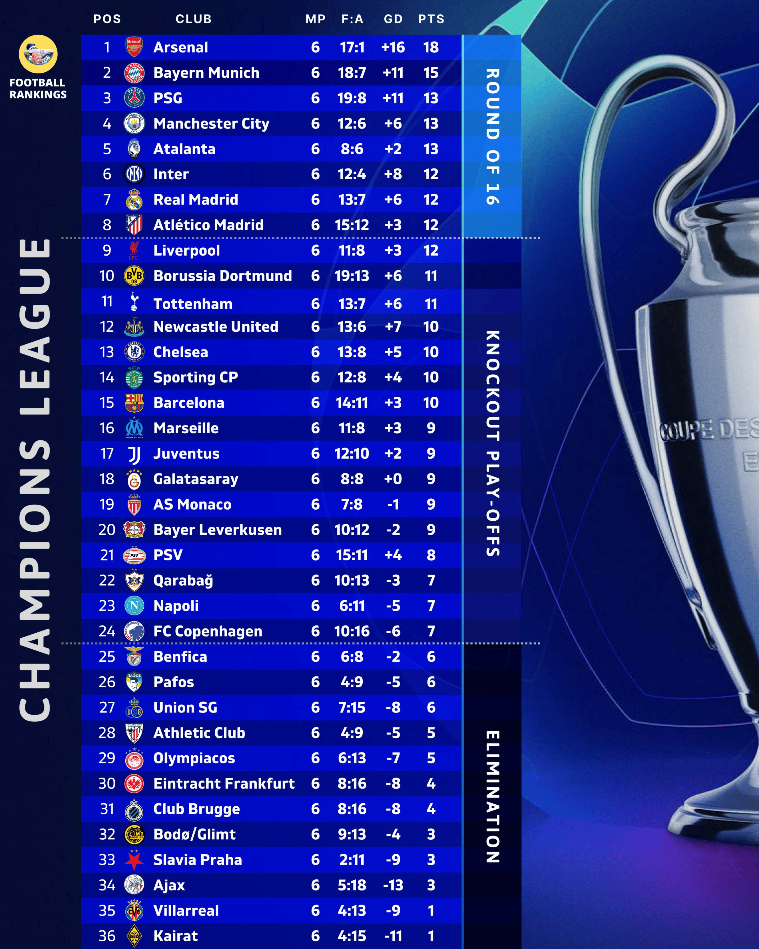 ท้ายที่สุดแล้ว ในบรรดาทีมที่ปัจจุบันมีอันดับเหนือบาร์เซโลนา แอตเลติโก มาดริดต้องเดินทางไปเยือนเกมที่ท้าทายกับกาลาตาซาราย อินเตอร์ มิลานต้องเผชิญหน้ากับอาร์เซนอลโดยตรง และเรอัล มาดริดจะพบกับเบนฟิก้าของมูรินโญ่ในรอบสุดท้าย ขณะที่ทีมจากโปรตุเกสกำลังต่อสู้อย่างสิ้นหวังเพื่อคว้าตำแหน่งเพลย์ออฟ ทั้งสามทีมต่างมีความเสี่ยงที่จะเสียคะแนน