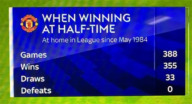 ตลอดประวัติศาสตร์พรีเมียร์ลีก แมนเชสเตอร์ ยูไนเต็ด ไม่เคยแพ้เมื่อนำในครึ่งแรกในเกมเหย้า ครั้งสุดท้ายที่ยูไนเต็ดแพ้เกมลีกในบ้านหลังจากนำในครึ่งแรกย้อนกลับไปถึงเดือนพฤษภาคม 1984ตลอด 41 ปีที่ผ่านมา เมื่อยูไนเต็ดนำในครึ่งแรกของการแข่งขันลีกในบ้าน พวกเขาชนะ 355 นัด เสมอ 34 นัด และไม่แพ้เลยใน 389 นัด หากไม่ใช่เพราะการเซฟสองครั้งในนาทีสุดท้ายของรามอนส์ สถิติที่ยอดเยี่ยมนี้คงกลายเป็นประวัติศาสตร์ไปแล้ว