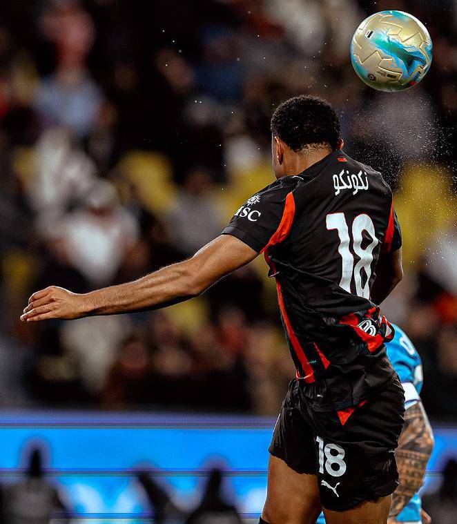 ในนาทีที่ 22 ไมญ็องทำบอลหลุดมือ ส่งความหวาดเสียวไปทั่วหลังคาซังของรอสโซเนรี่ แม้ว่าความพยายามของเอลมาสจะยังไม่ตรงกรอบก็ตาม จนถึงนาทีที่ 37 เอซี มิลานเปิดเกมโต้กลับซาเลเมเกอร์สเคลื่อนบอลเข้าสู่พื้นที่สุดท้ายก่อนจะจ่ายต่อให้กับนคุนคูที่ไร้ตัวประกบ แต่ลูกยิงของเขากลับลอยข้ามคานออกไป หลังจากรอดพ้นจากจังหวะอันตราย นาโปลีก็มาทำประตูขึ้นนำได้ในอีกสองนาทีถัดมา ลูกครอสจากฝั่งซ้ายของเมญองทำให้ผู้รักษาประตูรับบอลพลาด บอลเลยไปถึงเนเรสที่ซ้ำเข้าไปอย่างง่ายดาย ส่งให้เจ้าบ้านออกนำ 1-0