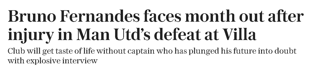 ในช่วงหนึ่งหรือสองปีที่ผ่านมา บรูโน่ แฟร์นันด์ส ถูกวิจารณ์เรื่องแนวโน้มการเสียการครองบอลและนิสัยการยักไหล่ด้วยความหงุดหงิด ซึ่งแฟนบอลหลายคนถึงกับรู้สึกว่าเขาเป็นอุปสรรคต่อทีม ตอนนี้ นักวิจารณ์กลุ่มเดียวกันจะได้เห็นแล้วว่า แมนเชสเตอร์ ยูไนเต็ด จะทำผลงานได้ดีขึ้นหรือแย่ลงเมื่อไม่มีเขา