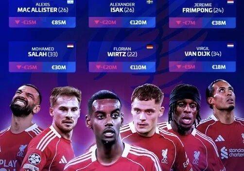 การอัปเดตล่าสุดของมูลค่าตลาดการโอนแสดงให้เห็นว่าไม่มีผู้เล่นของลิเวอร์พูลที่มีมูลค่าเพิ่มขึ้น ขณะที่หลายคนมีมูลค่าลดลงอย่างมากในจำนวนนั้น นักเตะที่ทำสถิติการเซ็นสัญญาสูงสุดอย่างไอแซคและวิร์ตซ์ต่างก็ลดลง 20 ล้านยูโร ขณะที่ซาลาห์และแม็คอัลลิสเตอร์ลดลงคนละ 15 ล้านยูโร ฟลินปอนลดลง 7 ล้านยูโร และกัปตันทีมฟานไดค์ โกนาเต้ และโจนส์ ต่างก็ลดลงคนละ 5 ล้านยูโร
