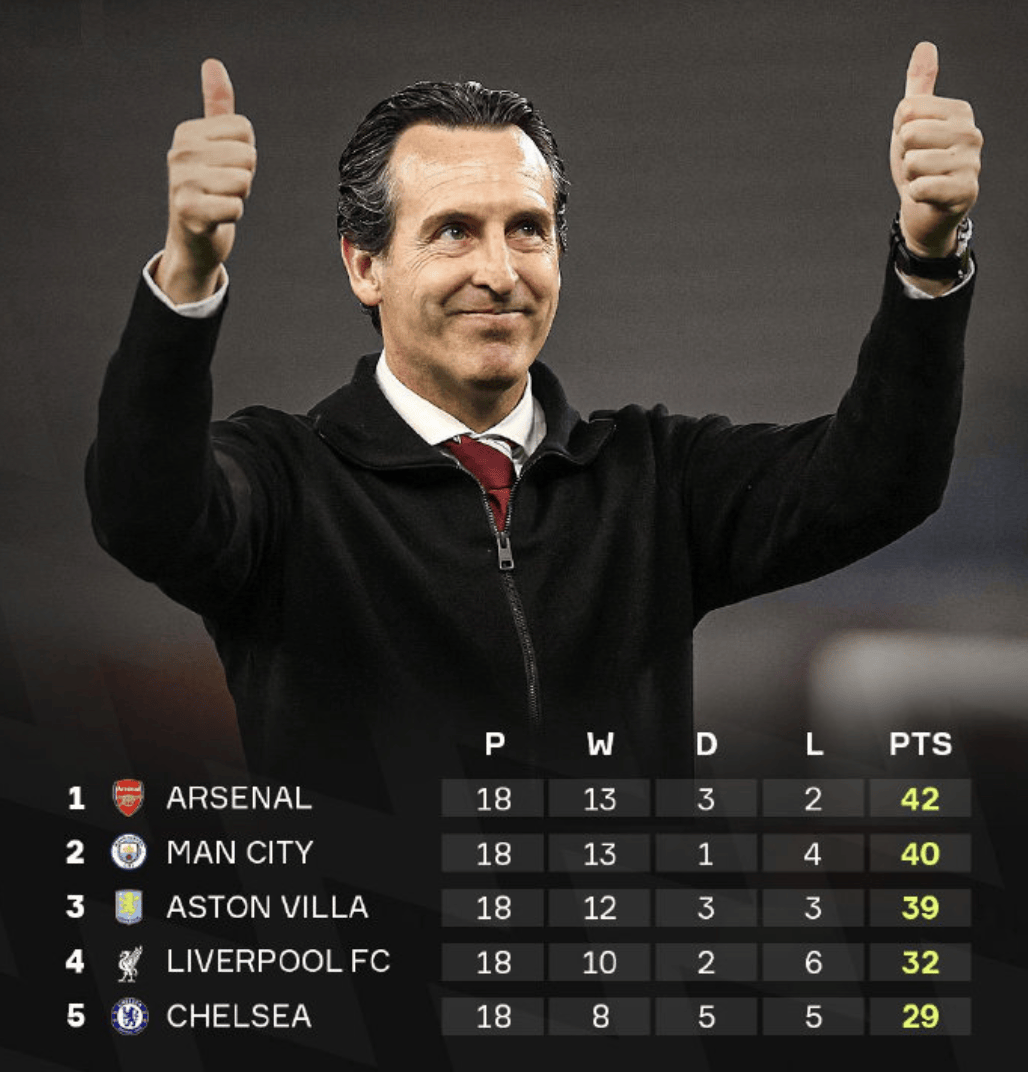 ในพรีเมียร์ลีก แอสตัน วิลล่า กลายเป็นทีมที่หยุดไม่อยู่ พวกเขาชนะ 12 จาก 13 นัดหลังสุด ใน 8 นัดล่าสุด พวกเขาคว้าชัยชนะได้ทุกนัด เสมอสถิติสโมสรที่ตั้งไว้เมื่อ 105 ปีที่แล้ว จากการที่ไม่ชนะใน 5 นัดแรกจนถึงตอนนี้ชนะ 12 จาก 13 นัด การเปลี่ยนแปลงของวิลล่านั้นน่าทึ่งจนแทบไม่น่าเชื่อ