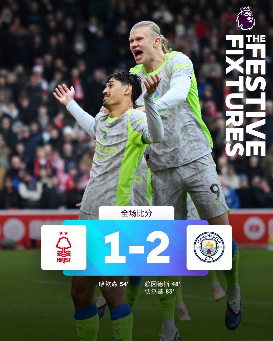 แมนเชสเตอร์ ซิตี้ เอาชนะ น็อตติงแฮม ฟอเรสต์ 2-1 ในเกมเยือน