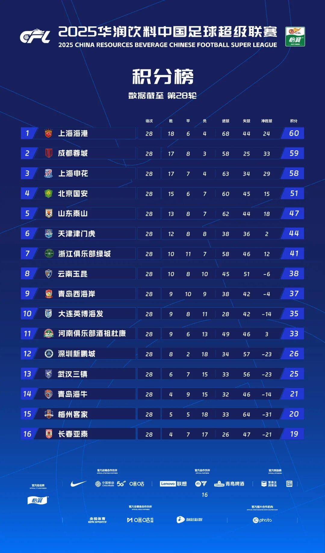 ผู้เล่นตัวจริงของเซี่ยงไฮ้ เสิ่นหัว: 1-เซว่ ชิงเห่า, 3-คิม ซุน-คยู, 5-จู เฉินเจี๋ย, 9-อันเดร ลุยซ์, 10-เตเซรา, 13-มานาฟ, 15-อู๋ ซี, 17-เกา เทียนอี้, 19-อาซู, 23-หลี่ เค่อ, 27-เฉิน จินอี้.