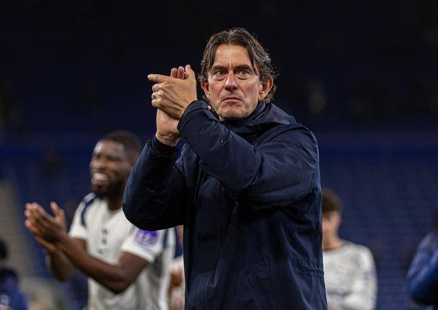 ↑ ผู้จัดการทีมท็อตแนม ฮอตสเปอร์ แฟรงค์ เฉลิมฉลองชัยชนะหลังจบการแข่งขัน