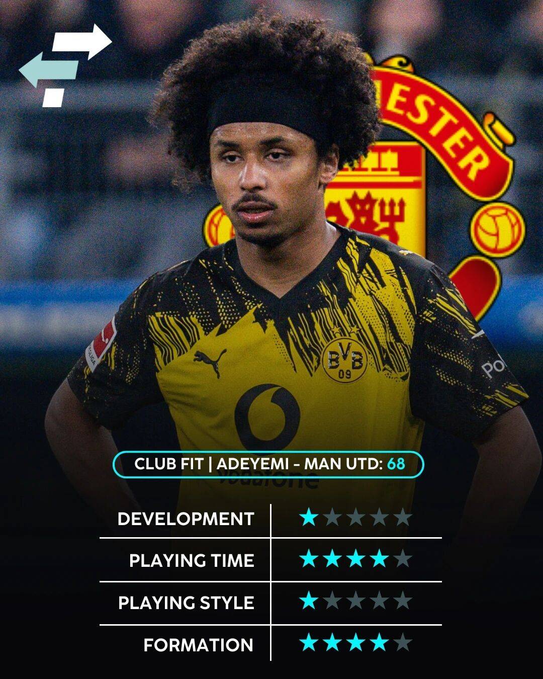 แมนเชสเตอร์ ยูไนเต็ด ต้องการนักเตะที่มีคุณภาพระดับนี้: สามารถเล่นได้ทั้งตำแหน่งปีก, กองกลางตัวรุก และกองหน้าตัวเป้า โดยเฉพาะอย่างยิ่งผู้เล่นที่มีความเร็วและความสามารถทางเทคนิค อเดเยมีมีความเร็วเป็นพิเศษ โรมาโนกล่าวว่า "ดังนั้น ยูไนเต็ดจึงกำลังจับตามองนักเตะประเภทนี้อย่างไม่ต้องสงสัย และอเดเยมีก็เป็นหนึ่งในนั้น"