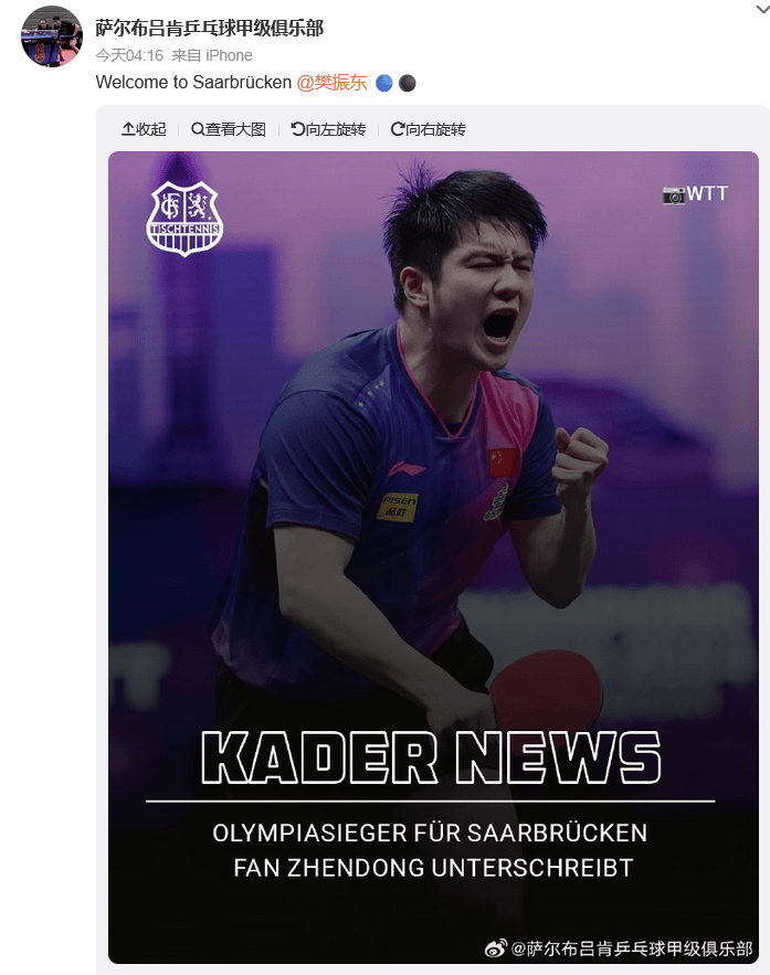 นักกีฬาจีน เสวี่ย เฟย เข้าร่วมสโมสรปิงปองบุนเดสลีกา; ก่อนหน้านี้ ฟาน เจินตง ได้ประกาศย้ายไปยังบุนเดสลีกาเช่นกัน ซึ่งเขาจะจับคู่กับ Møllergaard_Saarbrücken_Sport_Official Announcement