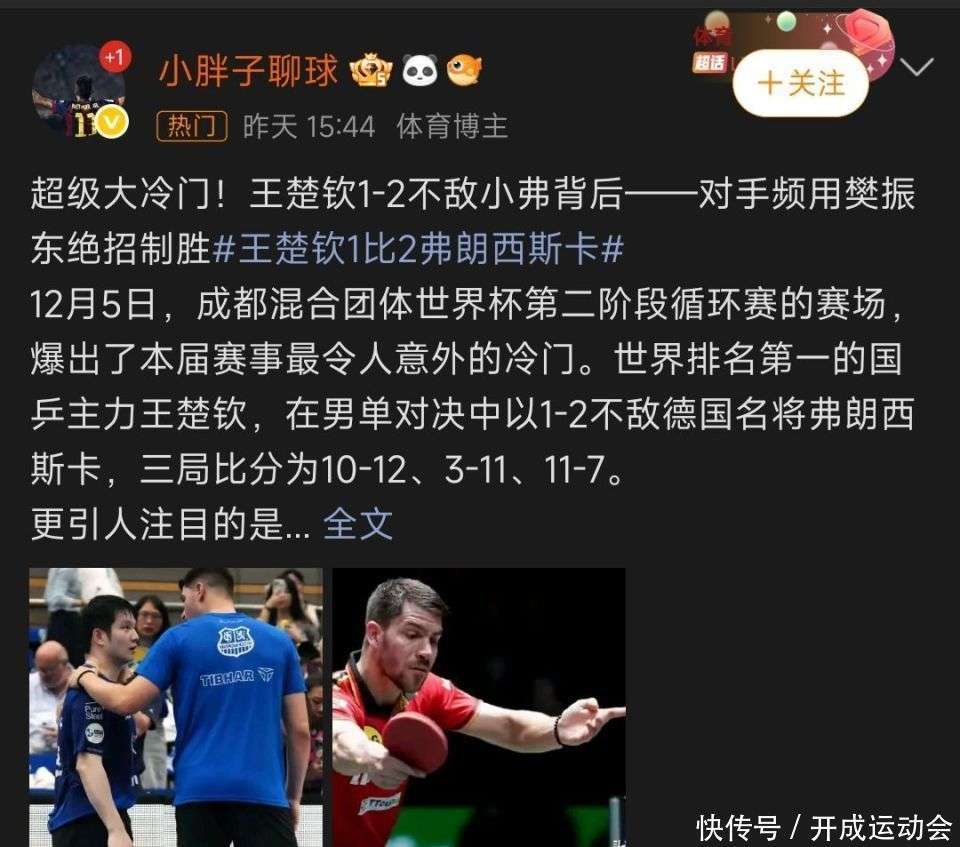 หวัง ชวี่ฉิน ไม่ได้แพ้ คู่แข่งของเขาใช้กลยุทธ์ที่ชนะของ ฟาน เจินตง ซ้ำแล้วซ้ำเล่า ทำให้ชัยชนะนั้นไม่สมควรได้รับ! แฟนๆ: เฉพาะการยอมรับข้อบกพร่องอย่างเปิดเผยเท่านั้นจึงจะก้าวหน้าได้อย่างแท้จริง _ฟรานเชสก้า_ _การแข่งขัน_ _โอลิมปิกปารีส_