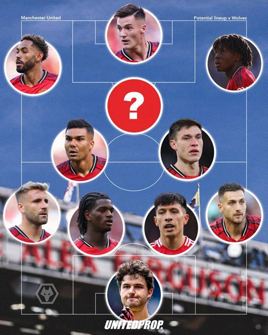 คาดการณ์ 11 ตัวจริงของแมนเชสเตอร์ ยูไนเต็ด พบกับวูล์ฟส์: เซนา ราเมนส์/ดิโอโก้ ดาโลต์, เอเด็น ฮิเวน, ลิซานโดร มาร์ติเนซ, ลุค ชอว์/คาเซมิโร่, อูการ์เต้/แพทริค ดูกู, ซิร์คซี, คูน่า/เซชโก้