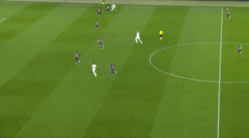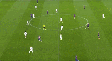 คุณสมบัติที่สำคัญที่สุดของโอลโมคือเขาไม่เพียงแต่ควบคุมเกมรุกเท่านั้น แต่ยังช่วยเกมรับอีกด้วย ในครั้งนี้ ราฟินญาพยายามเข้าสกัดแต่พลาดบอล ทำให้ฝ่ายตรงข้ามฉวยโอกาสเจาะช่องว่างหลังคูเด้และสร้างโอกาสได้