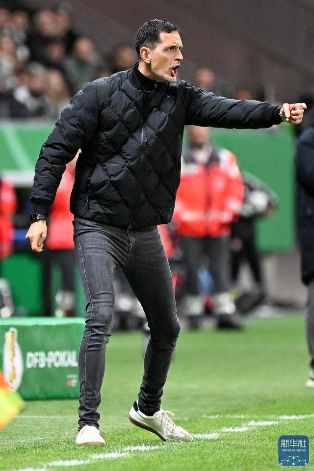 ↑ โค้ชทีม Eintracht Frankfurt ท็อปเมอร์เล่ กำลังสั่งการทีมจากข้างสนาม