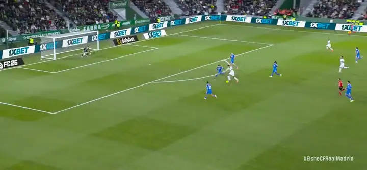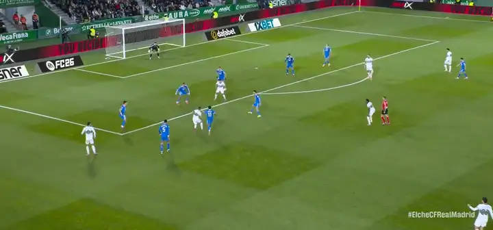 ตัวอย่างเช่น ในนาทีที่ 84 เรอัล มาดริด เสียประตูนี้ โดย โรดริเกซ ของเอลเช่ ยิงเข้าประตู ซึ่งเผยให้เห็นปัญหาของเซ็นเตอร์แบ็คและแบ็คขวาของพวกเขา