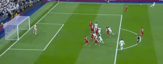โรดรีโก้เปิดบอลอย่างแม่นยำเข้าไปในกรอบเขตโทษ ซึ่งเบลลิงแฮมพุ่งตัวเข้าไปเอาชนะกองหลังและโหม่งบอลเข้าประตู เรอัล มาดริดขึ้นนำ 1-0 เป็นประตูที่สมบูรณ์แบบตามตำราของเรอัล มาดริด: สร้างโอกาสทางริมเส้นก่อนที่กองกลางจะวิ่งเติมเข้ามาจบสกอร์อย่างเด็ดขาด