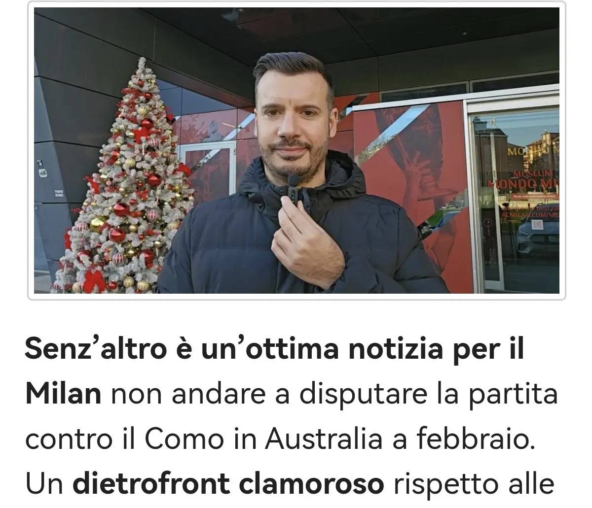 เมื่อคืนที่ผ่านมา นักเตะใหม่ นิกลาส ฟุลล์ครุก ได้เดินทางมาถึงสนามบินมัลเปนซาแล้ว พวกเราทุกคนต่างหวังว่าจะมีผลลัพธ์ที่ดีกว่านี้ แต่ข่าวจากสำนักงานใหญ่ของรอสโซเนรีระบุว่าไม่มีงบประมาณสำหรับเดือนมกราคม น่าเสียดายที่สถานการณ์เป็นเช่นนี้ น่าเสียดายที่ทรัพยากรจำนวนมากถูกจัดสรรอย่างไม่เหมาะสมในช่วงซัมเมอร์ที่ผ่านมา เนื่องจากราบิโอต์และโมดริชยังคงเป็นการเซ็นสัญญาที่น่าเชื่อถือเพียงรายเดียวจนถึงปัจจุบัน