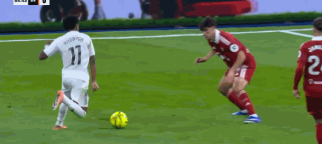ในนาทีที่ 38 เรอัล มาดริดได้ลูกฟรีคิกในแดนรุก โรดริโก้ก้าวขึ้นมาเป็นผู้ยิง โดยโยนบอลอย่างแม่นยำเข้าไปในเขตโทษ ซึ่งจู๊ด เบลลิงแฮมกระโดดขึ้นสูงสุดและโหม่งเข้าประตู ส่งให้เรอัล มาดริดขึ้นนำเซบีย่า 1-0 อย่างน่าจดจำ นี่เป็นแอสซิสต์แรกของโรดริโก้ในลาลีกาตั้งแต่เมื่อวันที่ 25 มกราคมปีนี้