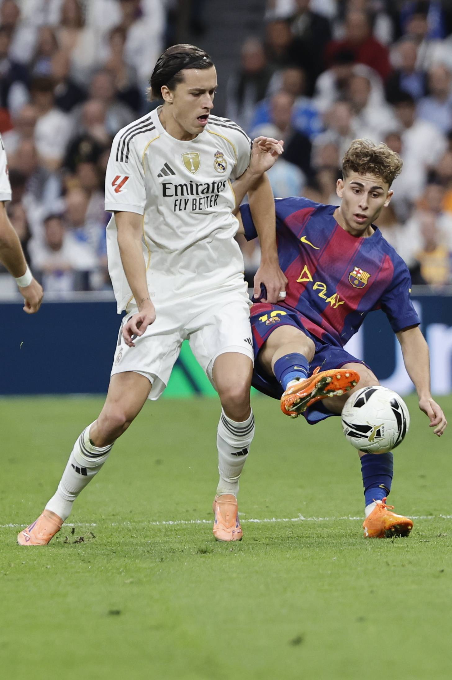 เมื่อวันที่ 26 ตุลาคม คาร์เรราสของเรอัล มาดริด (ซ้าย) ท้าทายเฟอร์มิน โลเปซของบาร์เซโลนาเพื่อแย่งบอล ซินหัว/EPA