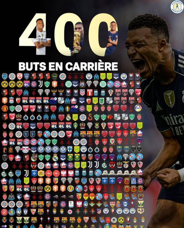 คีเลียน เอ็มบัปเป้ ทำสถิติครบ 400 ประตูในอาชีพ เหลือเพียง 2 ประตูเท่านั้นที่จะแซงหน้าผู้ทำประตูสูงสุดตลอดกาลของฝรั่งเศส ผู้ชนะฟุตบอลโลก แชมเปียนส์ลีก รางวัลส่วนบุคคล