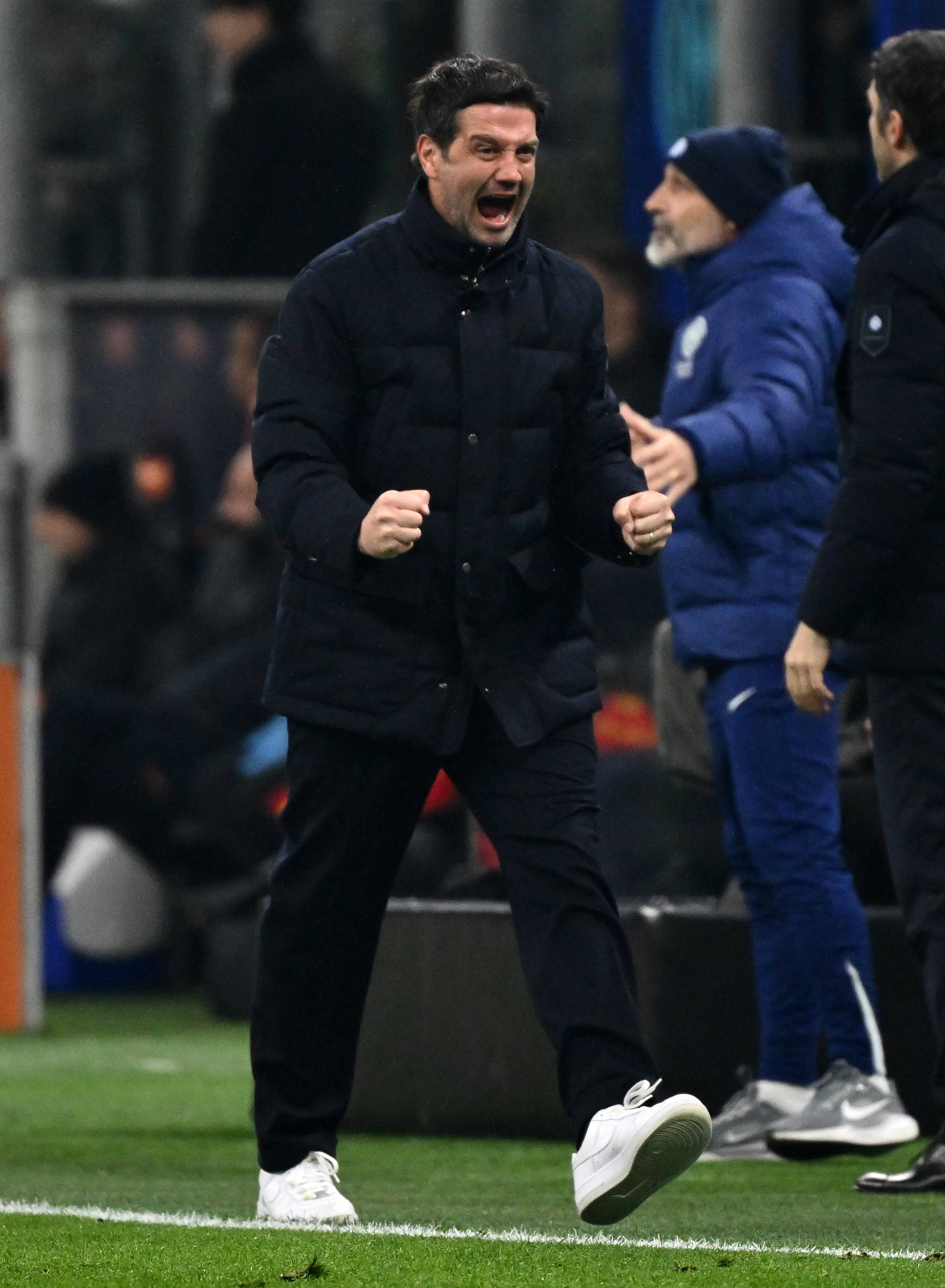 เมื่อวันที่ 14 มกราคม ซิโมเน อินซากี ผู้จัดการทีมอินเตอร์ มิลาน ฉลองชัยชนะ สำนักข่าวซินหัว (ภาพโดย อัลแบร์โต ลิงเรีย)