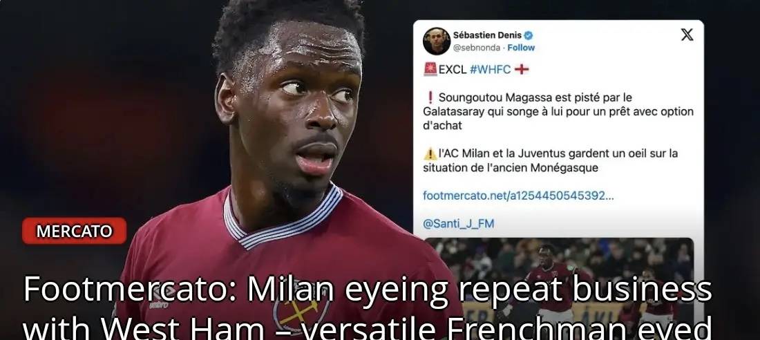 หลังจากประสบความสำเร็จ!? มิลานกำลังจับตาดูการย้ายทีมอีกครั้งจากเวสต์แฮม โดยต้องเผชิญกับการแข่งขันจากกาลาตาซารายและยูเวนตุส