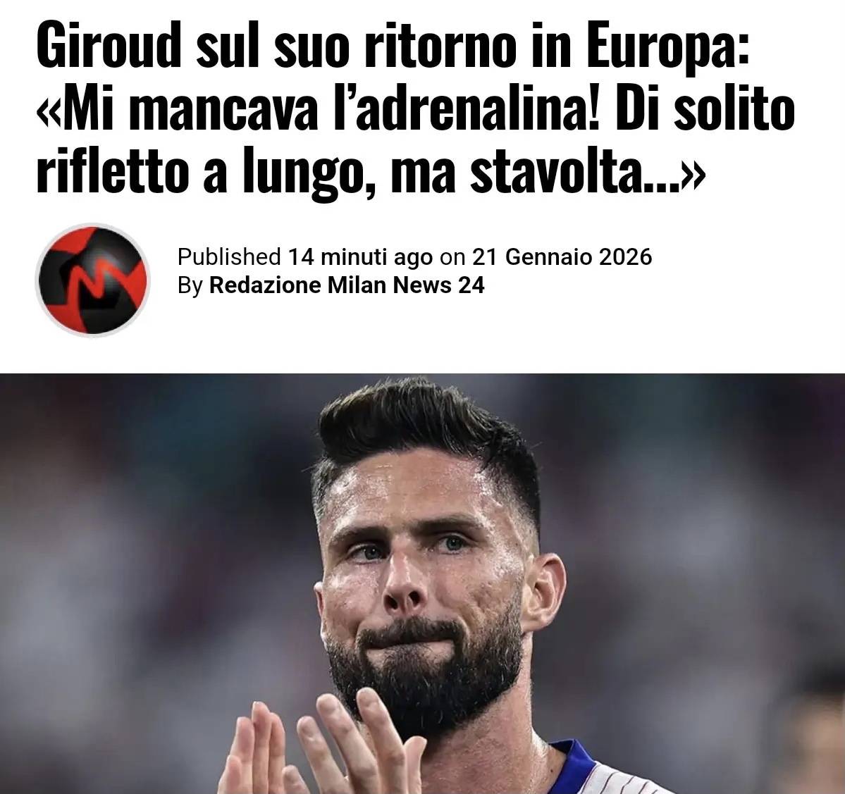 อดีตศูนย์หน้าเอซี มิลาน โอลิวิเยร์ ชิรูด์ อธิบายการย้ายไปร่วมทีมลีลล์: "ผมคิดถึงการเล่นในยุโรป และผมต้องการถ่ายทอดประสบการณ์ของผมให้กับผู้เล่นดาวรุ่งของลีลล์"