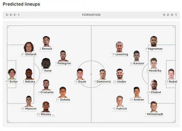 เซลิค วิงแบ็คของโรม่า กลับมาจากการบาดเจ็บและถูกเรียกตัวกลับมาในทีมชุดแข่งขัน กองหน้า ดอว์บิก และกองหลัง เอร์โมโซ่ ไม่อยู่เนื่องจากบาดเจ็บ ขณะที่นักเตะที่เซ็นสัญญาในช่วงฤดูหนาวอย่าง มาเลน ไม่สามารถลงเล่นได้เนื่องจากไม่มีสิทธิ์ลงสนาม กองหน้าสำรอง ลีออน เบลี่ย์ ได้กลับไปยังแอสตัน วิลล่าแล้วหลังจากสิ้นสุดสัญญายืมตัวสตุ๊ตการ์ทได้อัปเดตรายชื่อนักเตะในรายการยุโรป โดยกองหน้า เดมิโรวิช ที่หายจากอาการบาดเจ็บกลับมาแทนที่กองกลาง นาติ มิดฟิลด์ตัวรุก ฮานูช ที่เสร็จสิ้นภารกิจในศึกแอฟริกา คัพ ออฟ เนชั่นส์ ถูกพักการแข่งขันหลังจากทำไป 3 ประตูในศึกยุโรปฤดูกาลนี้ มิดฟิลด์ สติลเลอร์ ได้รับบาดเจ็บระหว่างการแข่งขันที่เสมอกับยูเนียน เบอร์ลิน 1-1 เมื่อสัปดาห์ที่แล้ว และยังคงไม่แน่ว่าจะได้ลงเล่นหรือไม่