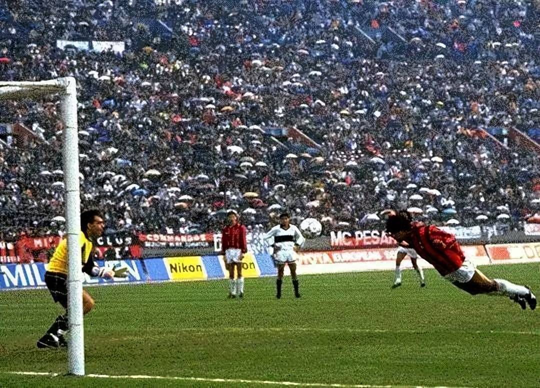 ฉบับที่สิบ เมื่อวันที่ 17 ธันวาคม 1989 เอซี มิลาน นำโดยสามประสานชาวดัตช์ พบกับแอตเลติโก นาซิอองนาล จากเมเดยิน ประเทศโคลอมเบีย แม้ว่ารูด กุลลิต จะถูกพักการแข่งขันเนื่องจากอาการบาดเจ็บ แต่เอซี มิลาน ยังคงครองเกมได้อย่างเด็ดขาดในสนาม โดยมีอิเกร์ อิตูริโญ ผู้รักษาประตูผู้บ้าคลั่ง เซฟลูกแล้วลูกเล่าในการแสดงฝีมือที่แทบจะไร้ที่ติจนกระทั่งในช่วงเวลาสุดท้ายของช่วงต่อเวลาพิเศษ เอซี มิลานจึงสามารถทำประตูได้ จากลูกฟรีคิกบริเวณขอบเขตโทษ อัลแบร์โต เอวานี ตัวสำรอง โยนลูกครึ่งวอลเลย์ผ่านกำแพง บอลเฉียดเสาเข้าไปในตาข่าย อิเกร์ อิตกิตา หมดหวังอย่างสิ้นเชิง เอวานีเป็นผู้เล่นที่โดดเด่นที่สุดในเกมนี้อย่างไม่ต้องสงสัย