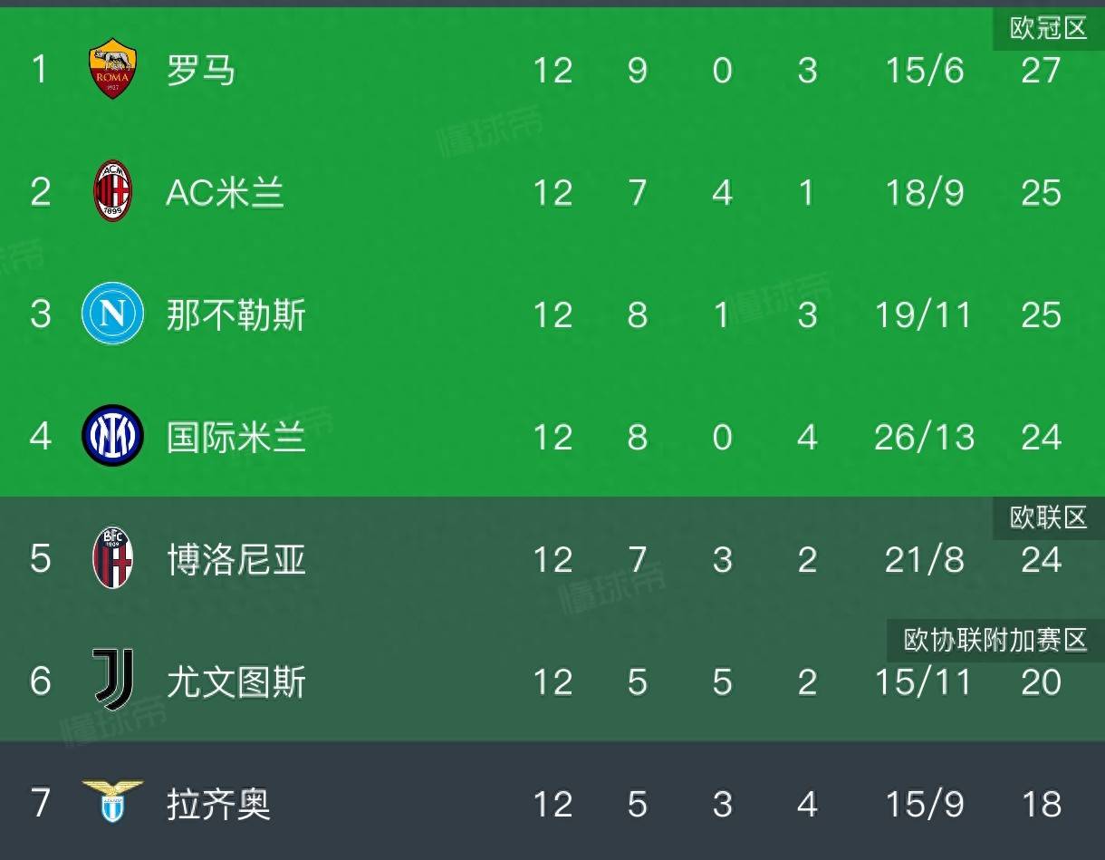 การแข่งขันกัลโช่ เซเรีย อา นัดที่ 12 มีสองเกมใหญ่ที่โดดเด่นในคืนนี้ โดยเอซี มิลาน คว้าชัยชนะในศึกดาร์บี้แห่งมิลาน และอินเตอร์ มิลาน เสียตำแหน่งจ่าฝูง ขณะที่โรม่าฉวยโอกาสขึ้นนำเป็นจ่าฝูงพูลิซิชทำประตูชัยในขณะที่ชัลฮาโนกลูพลาดจุดโทษ ส่งผลให้เอซี มิลานเอาชนะอินเตอร์ มิลาน 1-0 ในเกมเยือน ผลการแข่งขันนี้ทำให้มิลานขยับขึ้นสู่อันดับสองของตาราง ขณะที่อินเตอร์พ่ายแพ้เป็นครั้งที่สี่ของฤดูกาลและตกไปอยู่อันดับสี่ ซูเล, เฟอร์กูสัน และเวสลีย์ทำประตูได้ แต่ถูกปฏิเสธสองประตู ขณะที่โรม่าเอาชนะเครโมเนเซ่ที่เพิ่งเลื่อนชั้น 3-1 ในเกมเยือน ขยายช่องว่างจ่าฝูงเป็นสองแต้ม