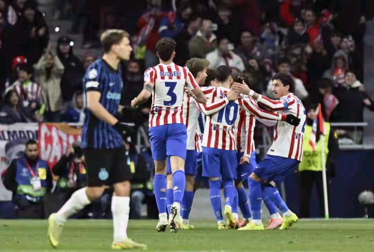 ตั้งแต่เริ่มเกม ทีมเจ้าบ้านแอตเลติโก มาดริด ได้แสดงให้เห็นถึงเกมการกดดันสูงตามแบบฉบับของพวกเขา และแนวทางการเล่นที่ดุดันไม่ยอมแพ้ ราวกับตาข่ายที่แน่นหนา พวกเขาได้ทำลายเส้นทางการผ่านบอลของอินเตอร์ มิลาน ให้กลายเป็นชิ้นเล็กชิ้นน้อย การควบคุมเกมค่อย ๆ เปลี่ยนเป็นของแอตเลติโก โดยทุกการเปลี่ยนผ่านระหว่างเกมรุกและเกมรับเต็มไปด้วยการปะทะทางร่างกายและความมีวินัยทางแท็กติก ประตูแรกถูกทำขึ้นในนาทีที่ 13การเคลื่อนไหวที่ลื่นไหลของทีมทะลวงแนวรับของอินเตอร์อย่างง่ายดาย พบกับอัลวาเรซในเขตโทษพอดี กองหน้าชาวอาร์เจนตินาไม่ลังเลแม้แต่น้อย ยิงบอลเข้าไปในตาข่ายอย่างเยือกเย็นและเด็ดขาด 1-0 แอตเลติโกขึ้นนำ และสนามเมโทรโปลิตาโนทั้งสนามก็ระเบิดเสียงเชียร์อย่างบ้าคลั่ง