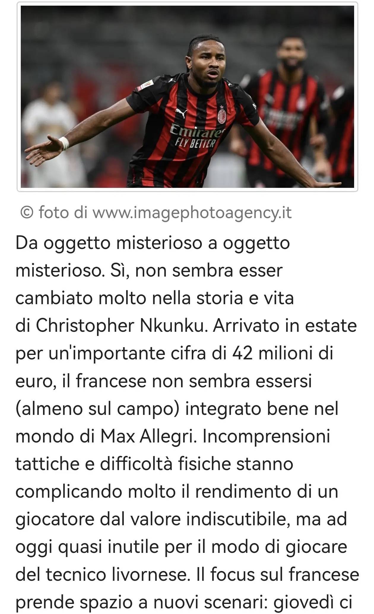จากปริศนาหนึ่งสู่อีกปริศนาหนึ่ง เส้นทางอาชีพของคริสโตเฟอร์ เอ็นคุนคู ดูเหมือนจะไม่เปลี่ยนแปลงเลย ในช่วงซัมเมอร์นี้ เขาได้ย้ายมาร่วมทีมมิลานด้วยค่าตัวมหาศาลถึง 42 ล้านยูโร แต่ชาวฝรั่งเศส (อย่างน้อยก็ในสนาม) ดูเหมือนจะประสบปัญหาในการปรับตัวเข้ากับระบบของแม็กซ์ อัลเลกรี