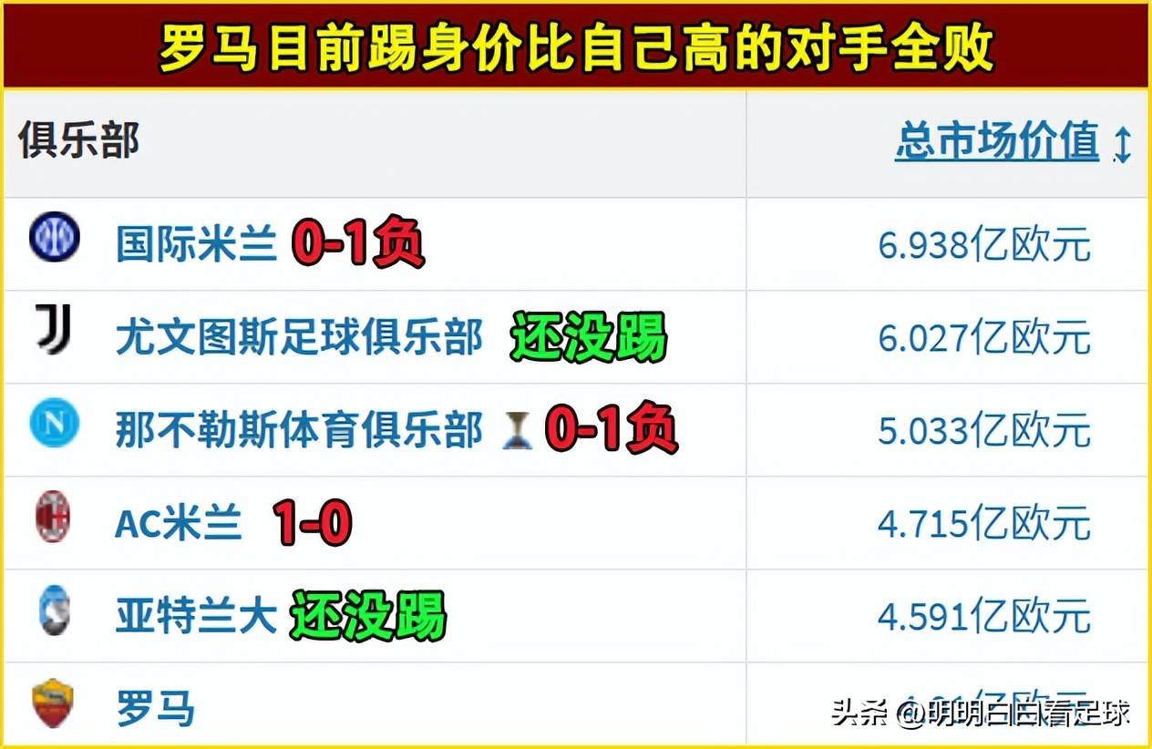 พวกเขาแพ้ทุกนัดที่เจอกับทีมที่มีมูลค่าทีมสูงกว่าตัวเอง โดยไม่มีข้อยกเว้นแม้แต่ครั้งเดียว