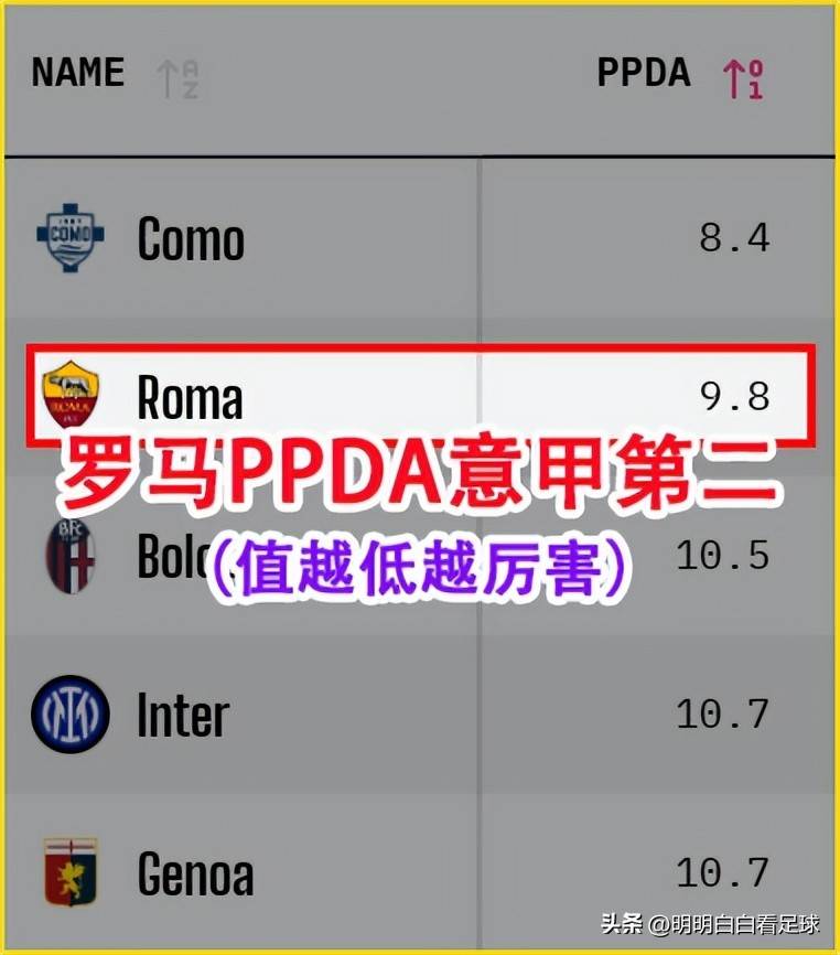 การกดดันของโรม่ามีความดุดันเป็นพิเศษ โดยมีค่า PPDA อยู่ที่ 9.8 ซึ่งอยู่ในอันดับที่สองของเซเรีย อา