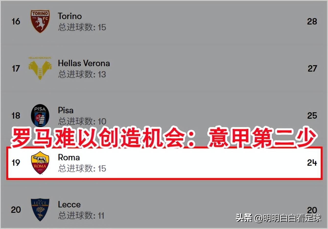 ตัวอย่างเช่น ใน 14 นัดของพวกเขากับเซเรีย อา พวกเขาสร้างโอกาสที่ชัดเจนเพียง 24 ครั้ง – ซึ่งเป็นจำนวนที่ต่ำเป็นอันดับสองในลีกทั้งหมด