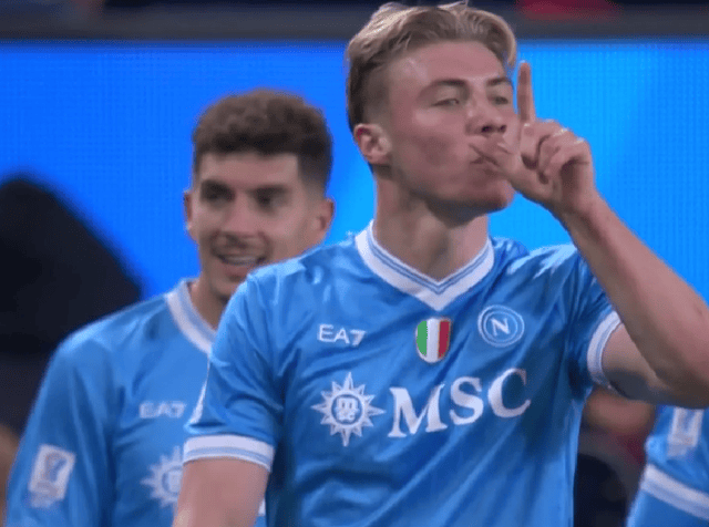 ในครึ่งหลัง ฮอยลุนด์ก้าวขึ้นมาปิดเกม ในนาทีที่ 63 นาโปลีเปิดเกมโต้กลับ ฮอยลุนด์เก็บบอลไว้ ใช้ความแข็งแกร่งและความเร็วของเขาเอาชนะกองหลังเอซี มิลาน ก่อนจะยิงบอลต่ำเข้ามุมไกลจากมุมแคบ ทำให้สกอร์เป็น 2-0