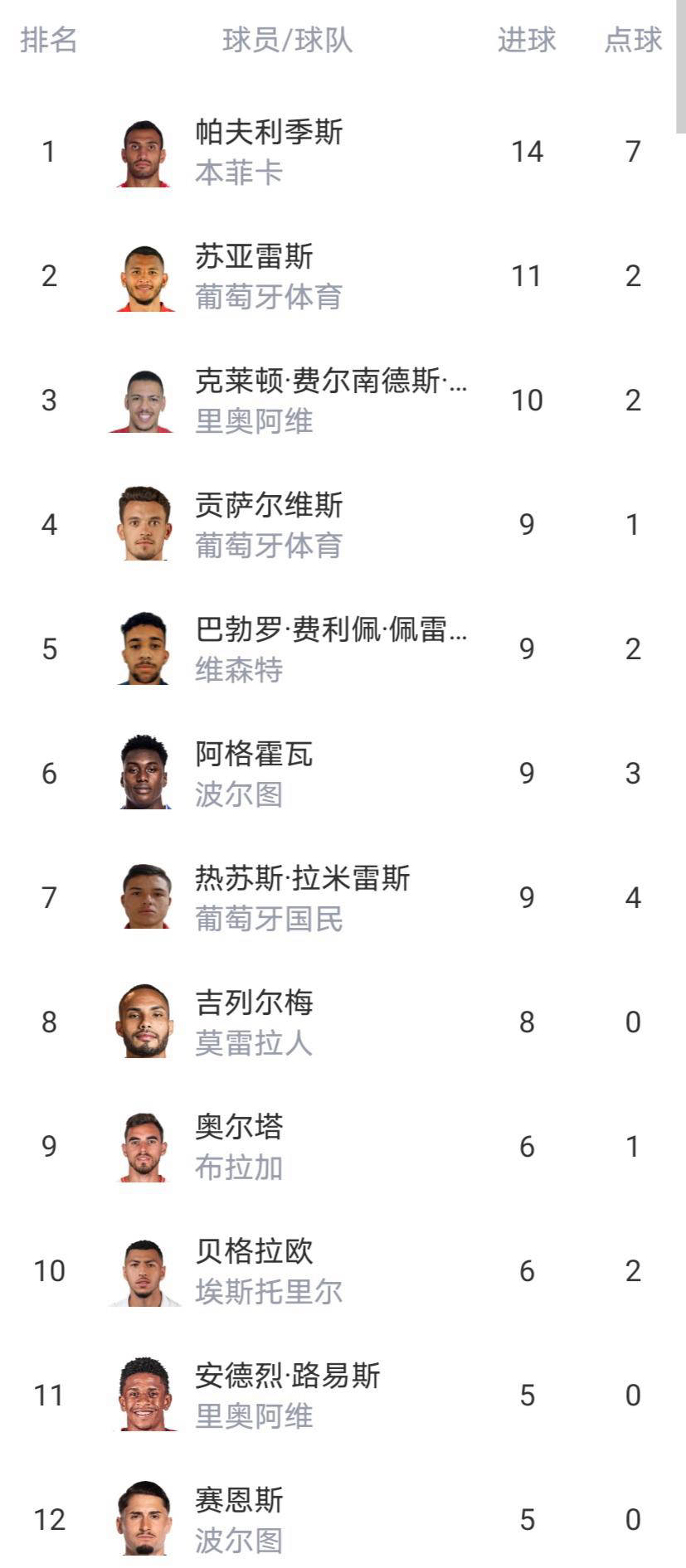 เกี่ยวกับตารางคะแนน ปาฟลิดิสของเบนฟิก้าเป็นผู้นำด้วย 14 ประตู อย่างไรก็ตาม ควรสังเกตว่าเจ็ดประตูในจำนวนนี้มาจากจุดโทษกองหน้าของสปอร์ติ้งซีพี ซัวเรซ อยู่ในอันดับที่สองด้วยจำนวน 11 ประตู หากไม่นับจุดโทษ จำนวนประตูที่ซัวเรซทำได้จากการเล่นปกติจะมากกว่าพาฟลิดิส ทำให้การแข่งขันชิงรางวัลรองเท้าทองคำทวีความดุเดือดและเต็มไปด้วยความตื่นเต้นอย่างมาก โดยรวมแล้ว เมื่อฤดูกาลดำเนินไป การแข่งขันชิงแชมป์ลีก Primeira Liga และรางวัลส่วนบุคคลต่าง ๆ ได้เข้าสู่จุดสูงสุดแล้ว ซึ่งสัญญาว่าจะมีผลงานที่น่าตื่นเต้นต่อไปในอนาคต