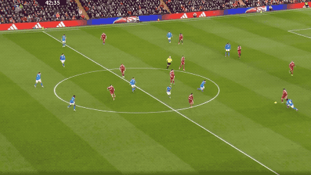 ในช่วงครึ่งแรก ลิเวอร์พูลได้นำห่างไป 2-0 ในนาทีที่ 52 วูล์ฟส์ได้ลูกเตะมุม อลิสซอนเซฟได้อย่างเหลือเชื่อ แต่บูเอโนโหม่งซ้ำจ่อๆ เข้าประตูไป ทำให้วูล์ฟส์ไล่มาเป็น 1-2