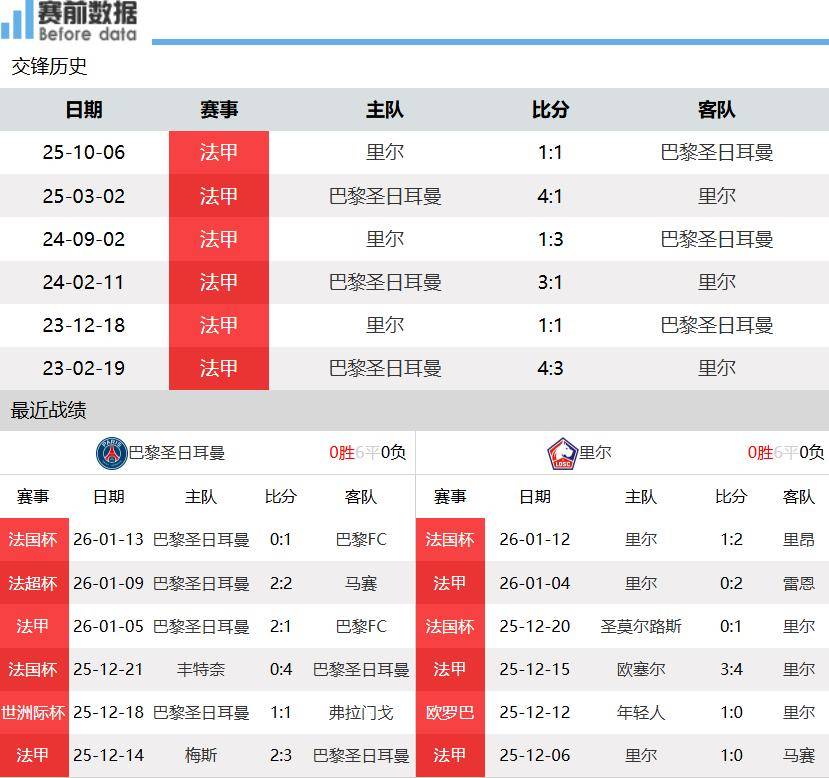 เวลา 04:00 น. ตามเวลาปักกิ่ง วันที่ 17 มกราคม การแข่งขันลีกเอิง 1 นัดที่ 18 เป็นการพบกันระหว่างทีมอันดับสี่ของตาราง โดยแชมป์เก่า ปารีส แซงต์-แชร์กแมง เปิดบ้านต้อนรับการมาเยือนของลีลล์ การแข่งขันนี้ถ่ายทอดสดฟรีทางช่อง CCTV Sports