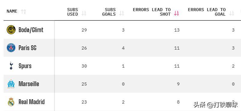 จากสถิติทางเทคนิคของแชมเปียนส์ลีก เราสามารถสังเกตได้ว่า มาร์กเซยเสียโอกาสให้คู่แข่งยิงประตูถึง 9 ครั้งเนื่องจากความผิดพลาด ทำให้พวกเขากลายเป็นทีมที่เสียโอกาสให้คู่แข่งยิงประตูมากที่สุดเป็นอันดับสามในรายการนี้