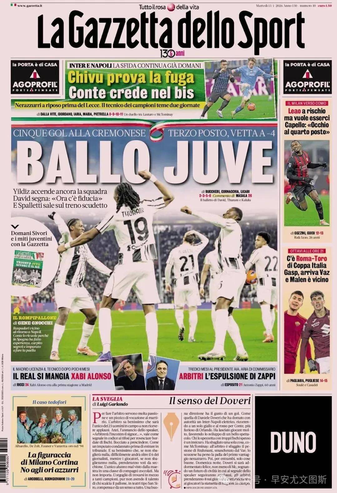 หลังจากรอบการแข่งขันที่น่าตื่นเต้น วงการฟุตบอลอิตาลีได้ลุกเป็นไฟอีกครั้ง ยูเวนตุสได้มอบความพ่ายแพ้อย่างยับเยิน 5-0 ต่อเครโมเนเซ่ ชัยชนะที่น่าพึงพอใจอย่างยิ่งนี้ไม่เพียงแต่ทำให้แฟนบอลเบียงโคเนรีตื่นเต้นยินดี แต่ยังทำให้ทั้งวงการเซเรียอาต้องจับตามองน่าสังเกตว่าครั้งสุดท้ายที่ยูเวนตุสทำประตูได้อย่างน้อยห้าประตูในนัดเหย้าของลีกเกิดขึ้นเมื่อสิบปีที่แล้ว ชัยชนะอย่างถล่มทลายนี้ทำให้ทีมหญิงชราเข้าใกล้จุดสูงสุดของตาราง โดยตอนนี้พวกเขามีคะแนนเท่ากับโรม่าและนาโปลีที่ 39 คะแนน ตามหลังอินเตอร์ มิลานเพียงสี่คะแนนเท่านั้น ความฝันในการคว้าแชมป์ลีกได้ถูกจุดขึ้นอีกครั้งในใจของแฟนบอลยูเวนตุส