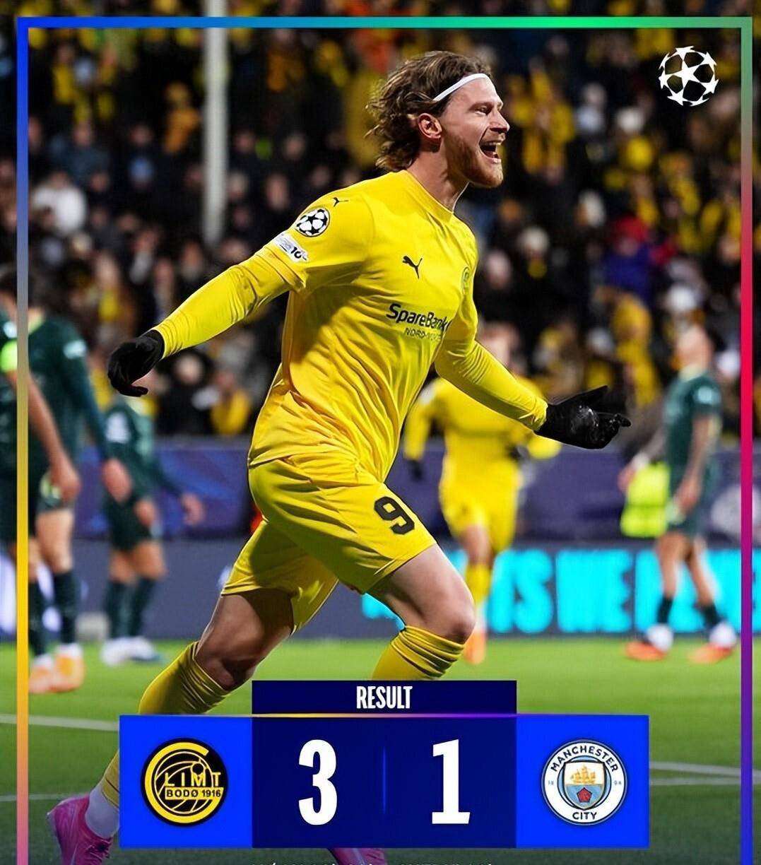 ในเมืองโบโด ประเทศนอร์เวย์ อุณหภูมิอาจไม่เย็นเท่ากับหัวใจของนักเตะแมนเชสเตอร์ ซิตี้ ที่กำลังเผชิญหน้ากับโบโด/กลิมท์ ทีมที่ไม่ใช่ทีมยักษ์ใหญ่แบบดั้งเดิม ทีมของเป๊ป กวาร์ดิโอลา ประสบความล้มเหลวอย่างสิ้นเชิง ในนาทีที่ 22 คาสเปอร์ ฮอย ของทีมเจ้าบ้านทำประตูขึ้นนำ เป็นสัญญาณเตือนภัยครั้งแรก เพียงสองนาทีต่อมา ในนาทีที่ 24 แคสเปอร์ ฮอยจ์ทำประตูอีกครั้ง ด้วยการจบสกอร์อย่างเฉียบขาดและมีประสิทธิภาพ ทำให้สกอร์กลายเป็น 2-0 การป้องกันของแมนเชสเตอร์ ซิตี้ถูกเจาะได้ในพริบตา ทำให้ทั้งทีมตกอยู่ในสถานการณ์ที่ไม่คาดคิด