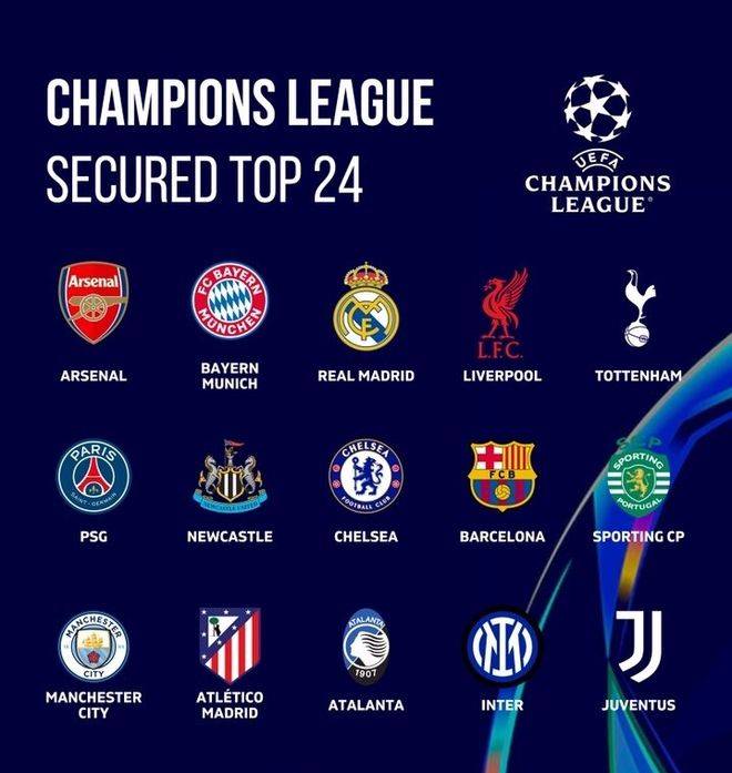 อย่างน้อยให้แน่ใจว่าทีมที่เข้ารอบเพลย์ออฟ: เรอัล มาดริด, ลิเวอร์พูล, ท็อตแนม ฮ็อตสเปอร์, ปารีส แซงต์-แชร์กแมง, นิวคาสเซิล ยูไนเต็ด, เชลซี, บาร์เซโลนา, สปอร์ติง ซีพี, แมนเชสเตอร์ ซิตี้, แอตเลติโก มาดริด, อัตตาลันตา, อินเตอร์ มิลาน, ยูเวนตุส